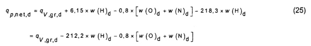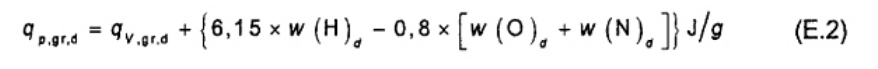 Giá trị năng lượng riêng tuyệt đối của quá trình đốt, tính bằng Jun, đối với đơn vị khối lượng nhiên liệu sinh học rắn được đốt cháy với oxy dưới điều kiện thể tích không đổi và toàn bộ nước của các sản phẩm phản ứng tồn tại dưới dạng hơi nước (ở trạng thái giả thuyết 0,1 MPa), các sản phẩm khác cũng như đối với giá trị tỏa nhiệt toàn phần, tất cả đều tại nhiệt độ tham chiếu (3.4).