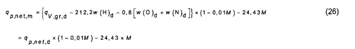 | qv,net,m | Giá trị nhiệt lượng thực ở áp suất không đổi của nhiên liệu sinh học có độ ẩm M |