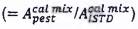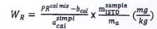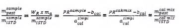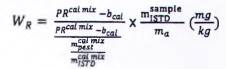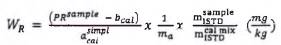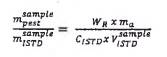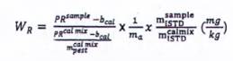 Do đó, phần khối lượng WR là hàm số của tỷ lệ pic, khối lượng của thuốc BVTV trong hỗn hợp đường chuẩn, khối lượng của phần mẫu thử và tỷ lệ khối lượng của ISTD trong dịch chiết cuối cùng và hỗn hợp đường chuẩn.