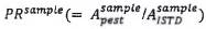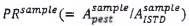 . Cách tiếp cận này dựa vào việc xác định khối lượng của thuốc BVTV trong toàn bộ dịch chiết mẫu và do đó trong phần thử nghiệm. Tỷ lệ khối lượng ISTD nói trên được xem xét trong tính toán như là một yếu tố hiệu chỉnh. Nồng độ tuyệt đối của dung dịch ISTD được sử dụng là không có ý nghĩa và không xuất hiện trong công thức.