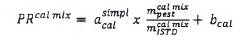 Xác định phương trình đường chuẩn cho mỗi hoạt chất bằng cách vẽ tỷ lệ pic PRcal mix