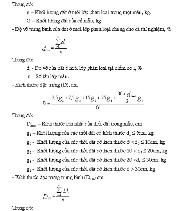 Bảng ghi số liệu xác định độ vỡ của lớp đất cày