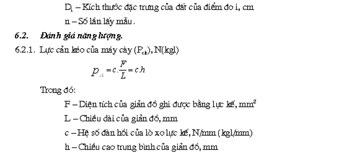 3.4.4. Đánh giá chất lượng làm việc của máy cày trong điều kiện thí nghiệm được thực hiện ở độ sâu cày theo yêu cầu nông học và số truyền làm việc hợp lý nhất của máy kéo theo quy định của đơn vị thiết kế chế tạo.