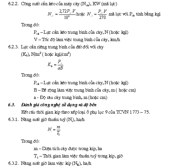 3.6. Máy kéo liên hợp với máy cày phải phù hợp về kiểu cỡ đúng theo dự án khi thiết kế cày và phải có tình trạng kỹ thuật tốt có công suất đạt 90% công suất định mức trở lên.