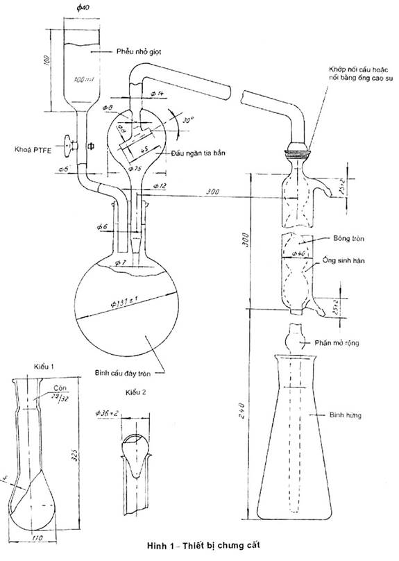 Thiết bị chưng cất theo hình 1 hoặc một thiết bị tương đương gồm các chi tiết: