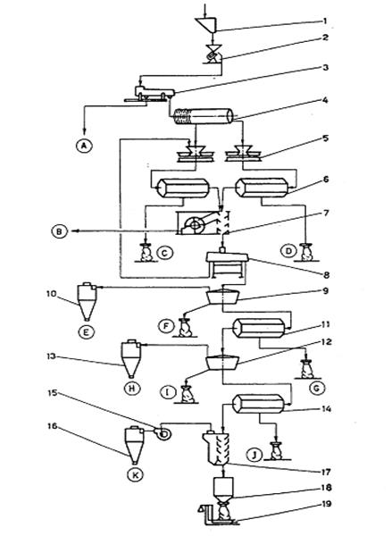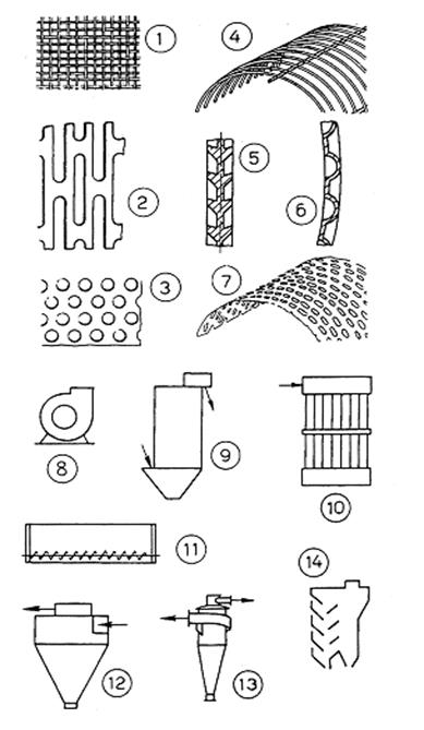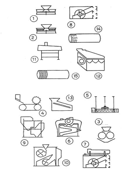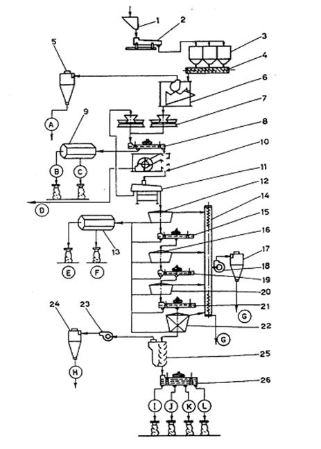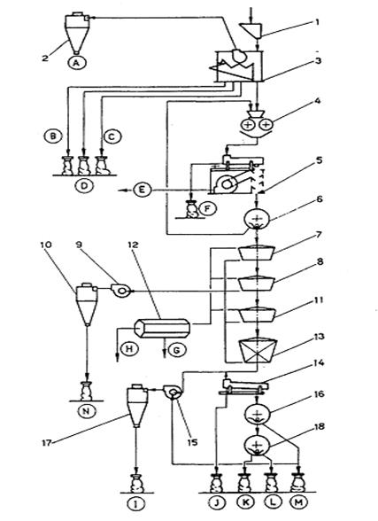 | 5 | Thiết bị phân loại kiểu sàng quay hoặc sàng phẳng | Rotary sieve classifier Plansiftier |