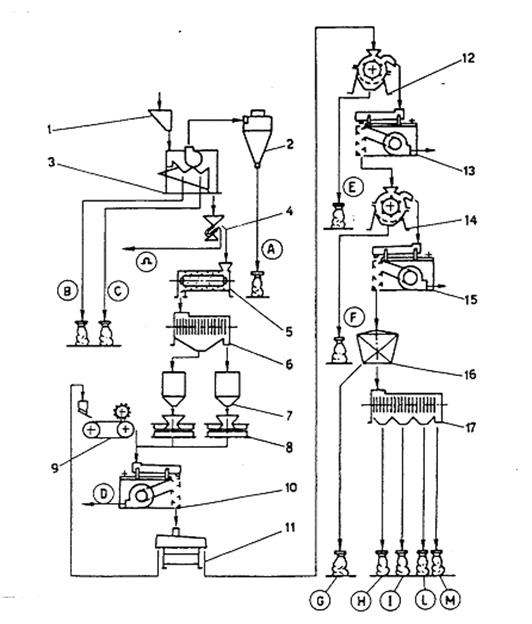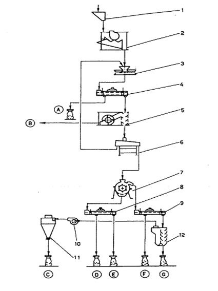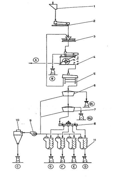 | 6 | Sàng quay phân loại hoặc sàng phẳng | Rotary sieve classifier or Plansifter |