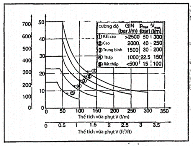 - Lượng mất nước đơn vị nằm trong phạm vi yêu cầu khoan phụt của các đối tượng áp dụng (quy định trong các tiêu chuẩn thiết kế của các đối tượng) và vận tốc chuyển động của nước ngầm nhỏ hơn 2 400 m/ngày đêm (2,8 x 10-2 m/s).