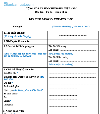 Bản khai đăng ký tên miền Việt Nam trong công ty cổ phần