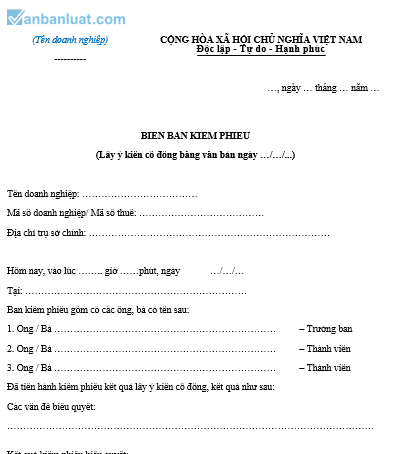 Tổng số phiếu tham gia biểu quyết: ……………..  phiếu, trong đó: