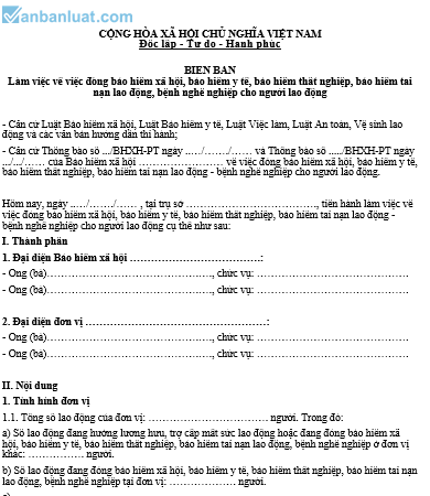 Hôm nay, ngày ..…/……./…… , tại trụ sở ………………………………., tiến hành làm việc về việc đóng bảo hiểm xã hội, bảo hiểm y tế, bảo hiểm thất nghiệp, bảo hiểm tai nạn lao động - bệnh nghề nghiệp cho người lao động cụ thể như sau: