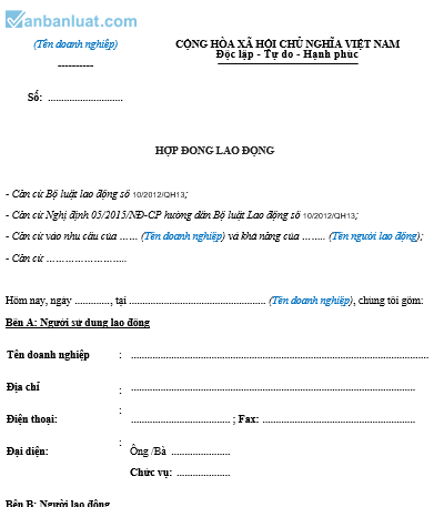 - Căn cứ vào nhu cầu của …… (Tên doanh nghiệp) và khả năng của …….. (Tên người lao động);