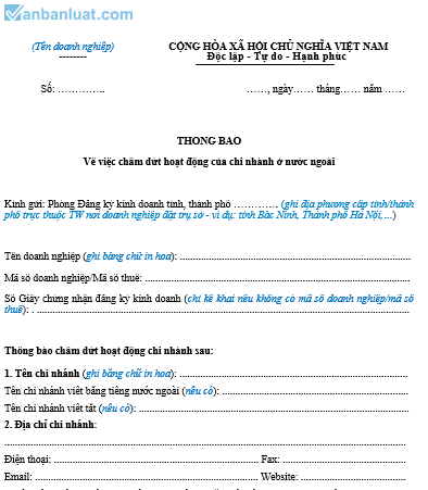 Thông báo chấm dứt hoạt động chi nhánh sau: