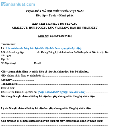 Nội dung đề nghị chấm dứt/hủy bỏ hiệu lực giấy chứng nhận đăng ký nhãn hiệu: