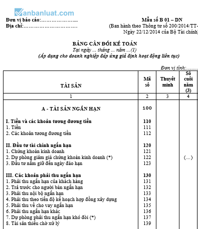 (Áp dụng cho doanh nghiệp đáp ứng giả định hoạt động liên tục)