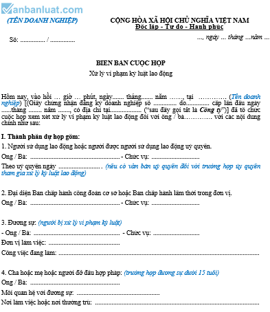 Biên bản họp xử lý vi phạm kỷ luật lao động trong công ty hợp danh