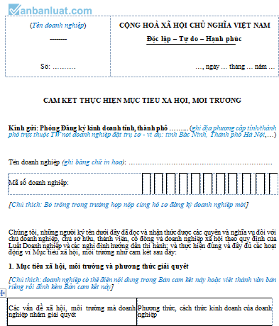 [Chú thích: doanh nghiệp có thể điền nội dung trong Bản cam kết này hoặc viết thành văn bản riêng rồi đính kèm Bản cam kết này]