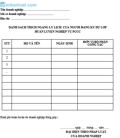 DANH SÁCH TRÍCH NGANG LÝ LỊCH CỦA NGƯỜI ĐĂNG KÝ DỰ LỚP HUẤN LUYỆN NGHIỆP VỤ PHÒNG CHÁY CHỮA CHÁY