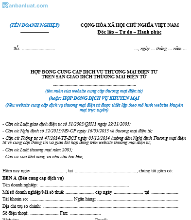 HỢP ĐỒNG CUNG CẤP DỊCH VỤ THƯƠNG MẠI ĐIỆN TỬ