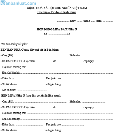 HỢP ĐỒNG MUA BÁN NHÀ Ở