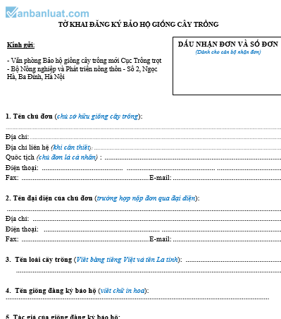 TỜ KHAI ĐĂNG KÝ BẢO HỘ GIỐNG CÂY TRỒNG