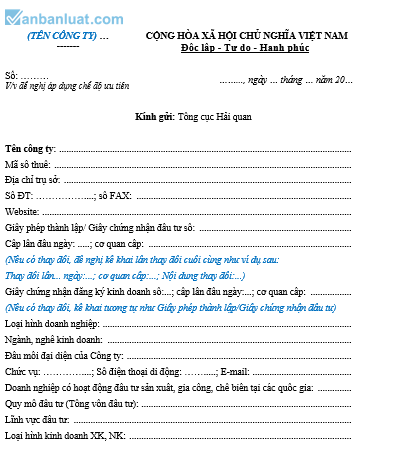 Đề nghị Tổng cục Hải quan xem xét, quyết định công nhận Công ty... là doanh nghiệp ưu tiên./.