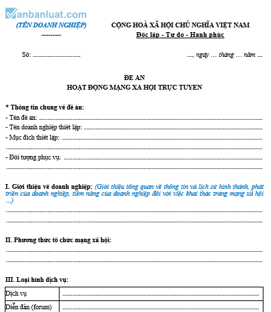 Đề án hoạt động mạng xã hội trực tuyến trong công ty TNHH hai thành viên trở lên