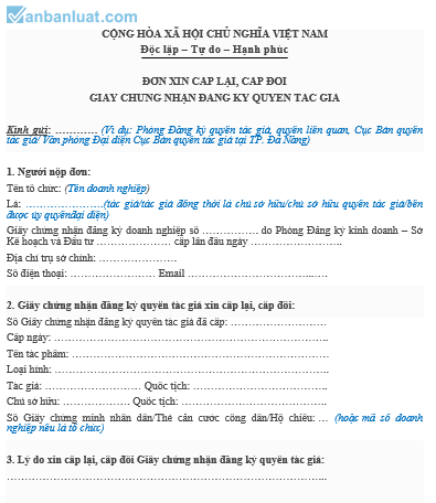 2. Giấy chứng nhận đăng ký quyền tác giả xin cấp lại, cấp đổi