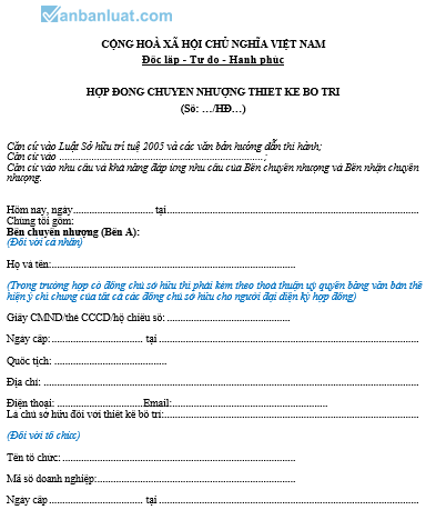 HỢP ĐỒNG CHUYỂN NHƯỢNG THIẾT KẾ BỐ TRÍ