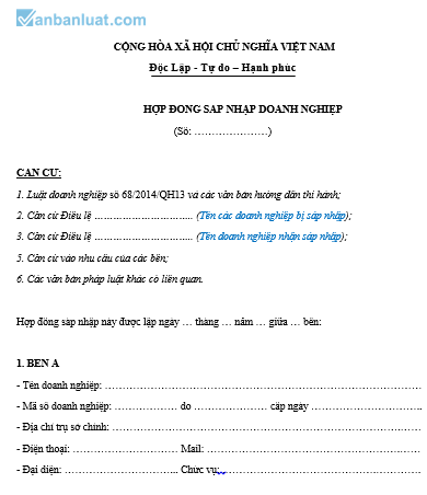 HỢP ĐỒNG SÁP NHẬP DOANH NGHIỆP