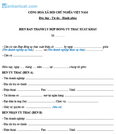 BIÊN BẢN THANH LÝ HỢP ĐỒNG ỦY THÁC XUẤT KHẨU