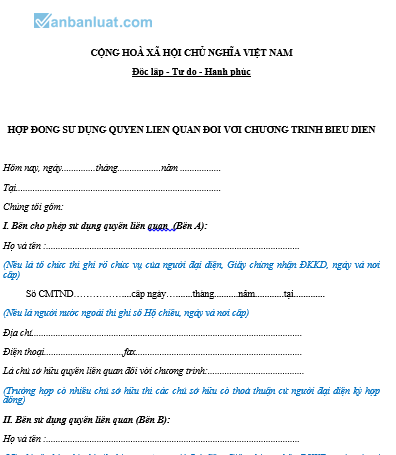 HỢP ĐỒNG SỬ DỤNG QUYỀN LIÊN QUAN ĐỐI VỚI CHƯƠNG TRÌNH BIỂU DIỄN
