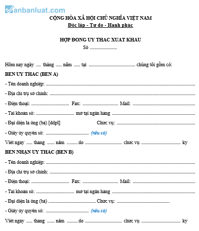 HỢP ĐỒNG UỶ THÁC XUẤT KHẨU