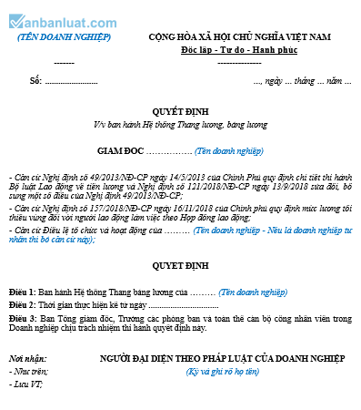 Điều 1: Ban hành Hệ thống Thang bảng lương của ……… (Tên doanh nghiệp)