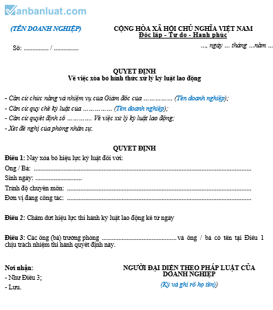 Quyết định xóa bỏ hình thức xử lý kỷ luật lao động trong công ty TNHH hai thành viên trở lên