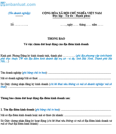 Thông báo chấm dứt hoạt động địa điểm kinh doanh sau: