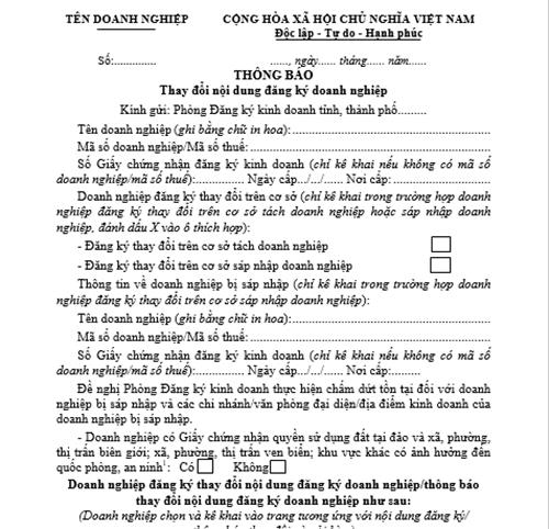 Doanh nghiệp đăng ký thay đổi nội dung đăng ký doanh nghiệp/thông báo thay đổi nội dung đăng ký doanh nghiệp như sau: