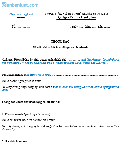 Thông báo chấm dứt hoạt động chi nhánh sau: