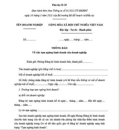 Đăng ký tạm ngừng kinh doanh từ ngày …. tháng …. năm …… cho đến ngày …. tháng …. năm ……