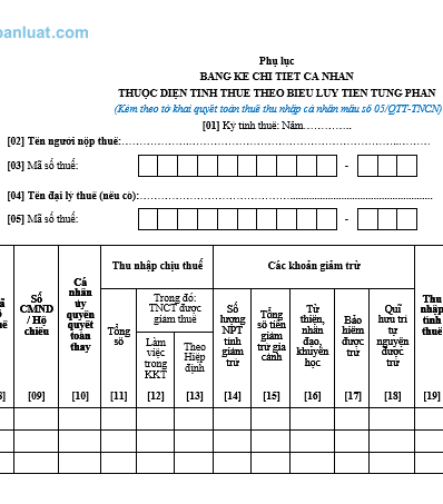 (Kèm theo tờ khai quyết toán thuế thu nhập cá nhân mẫu số 05/QTT-TNCN)