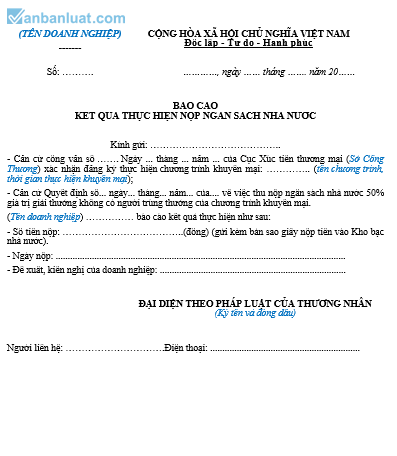 (Tên doanh nghiệp) …………… báo cáo kết quả thực hiện như sau: