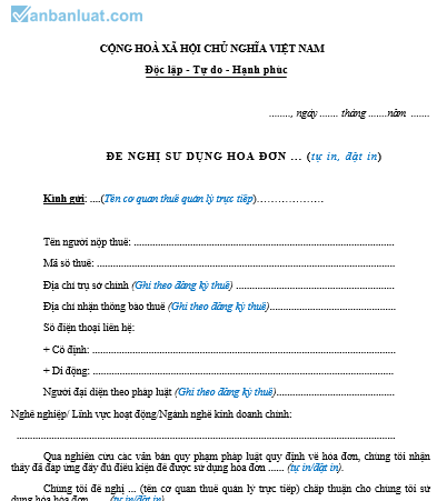 Chúng tôi đề nghị ... (Tên cơ quan thuế quản lý trực tiếp) chấp thuận cho chúng tôi sử dụng hóa hóa đơn ...... (tự in/đặt in).