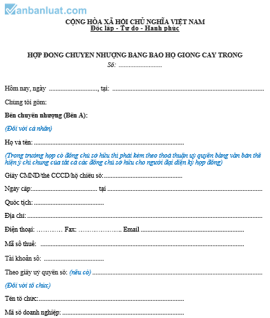 HỢP ĐỒNG CHUYỂN NHƯỢNG BẰNG BẢO HỘ GIỐNG CÂY TRỒNG