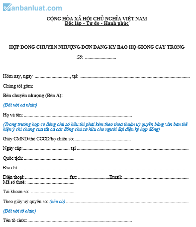 HỢP ĐỒNG CHUYỂN NHƯỢNG ĐƠN ĐĂNG KÝ BẢO HỘ GIỐNG CÂY TRỒNG