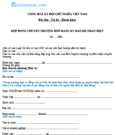 HỢP ĐỒNG CHUYỂN NHƯỢNG ĐƠN ĐĂNG KÝ NHÃN HIỆU