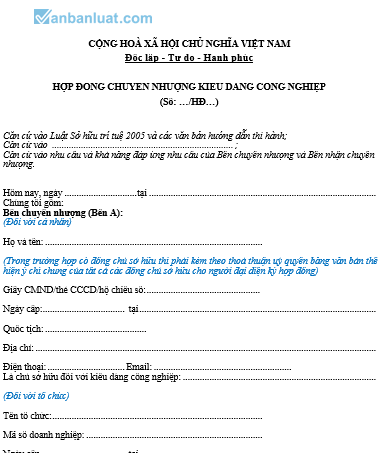 HỢP ĐỒNG CHUYỂN NHƯỢNG KIỂU DÁNG CÔNG NGHIỆP