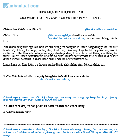 Các điều kiện giao dịch chung của website cung cấp dịch vụ thương mại điện tử áp dụng cho hoạt động mua bán hoặc tổ chức đấu giá, khuyến mại hàng hóa, dịch vụ trên website (nếu có).