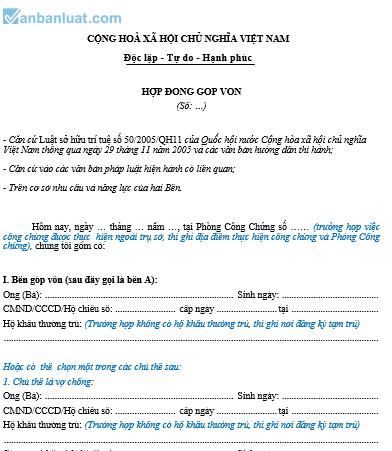 Mẫu hợp đồng góp vốn trong công ty TNHH một thành viên