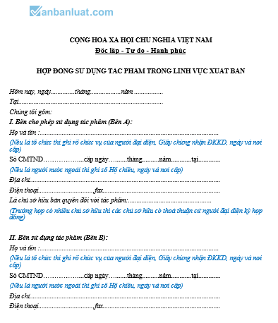 HỢP ĐỒNG SỬ DỤNG TÁC PHẨM TRONG LĨNH VỰC XUẤT BẢN
