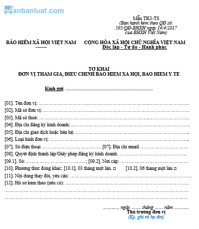Tờ khai đơn vị tham gia, điều chỉnh BHXH, BHYT (mẫu TK3-TS)